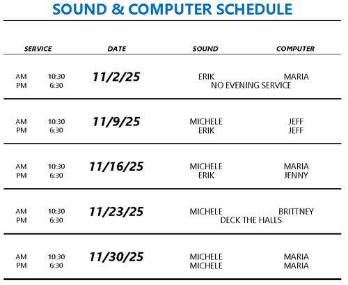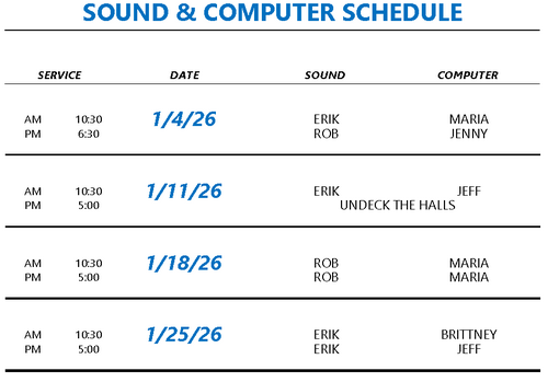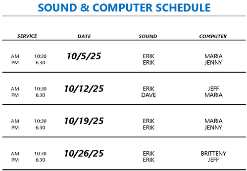 Thank you for serving with us. Please contact your ministry head if you have a conflict.